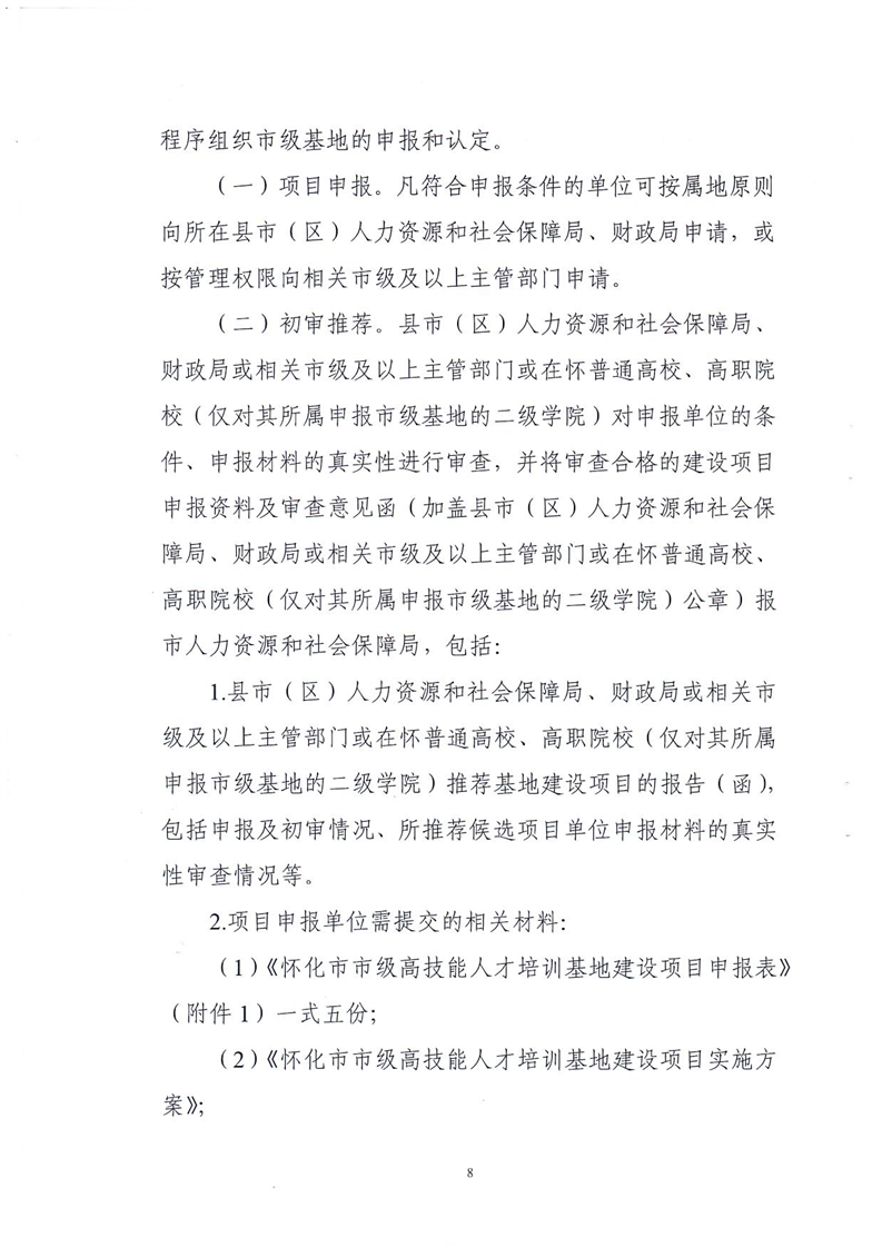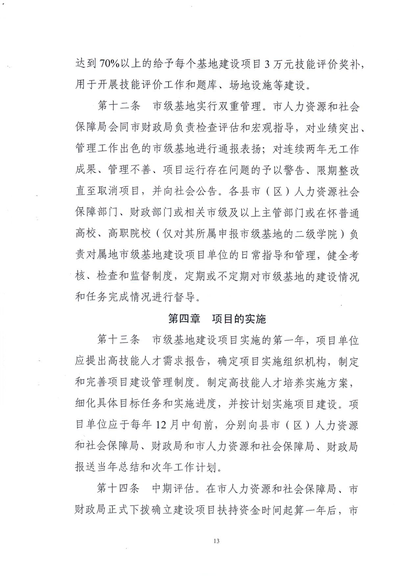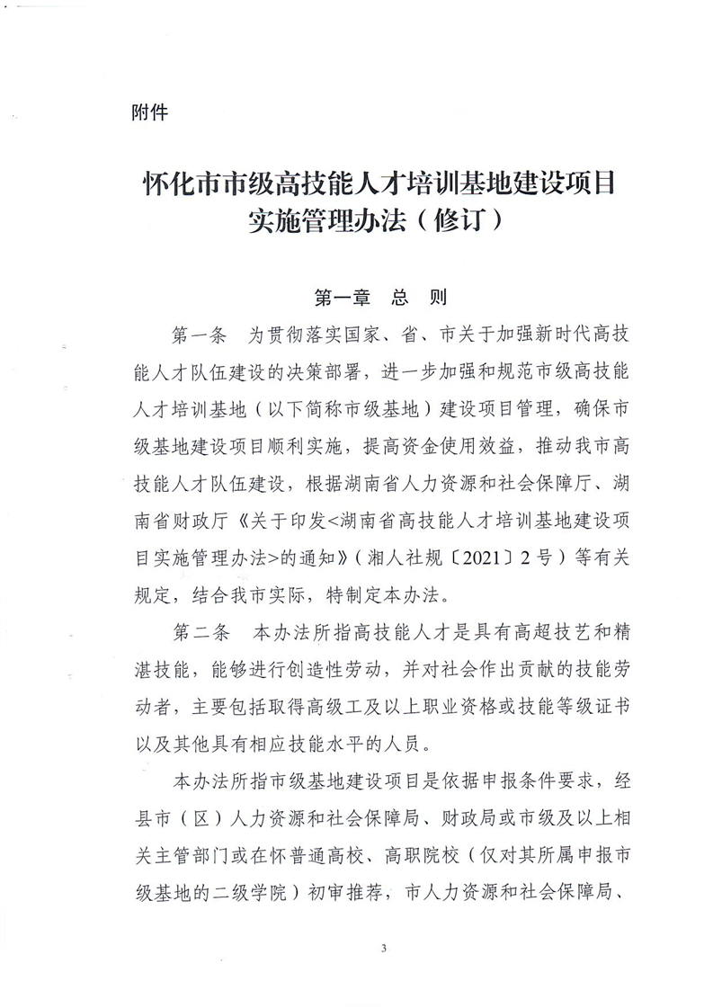 關於印發《懷化市市級高技能人才培訓基地建設項目實施管理辦法(修訂)》的通知