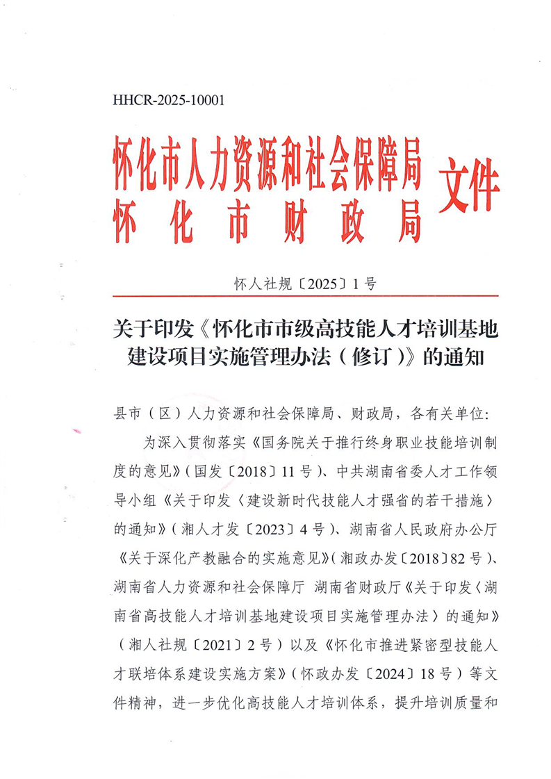 索引號:431200/2025-018274 文號:懷人社規〔2025〕1號 統一登記號:HHCR-2025-10001