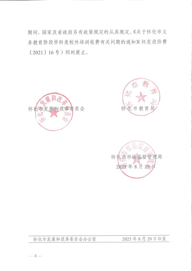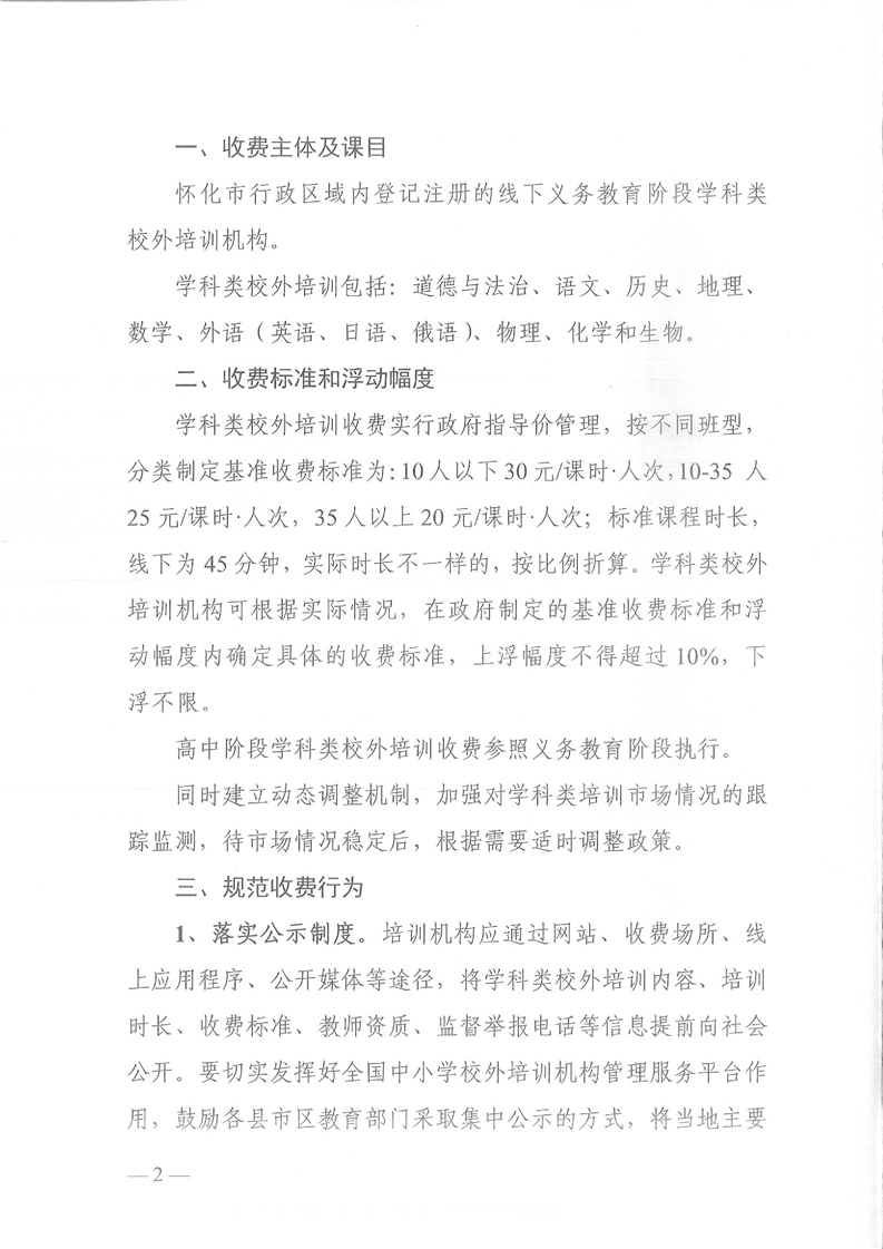 關於懷化市義務教育階段學科類校外培訓收費有關問題的通知
