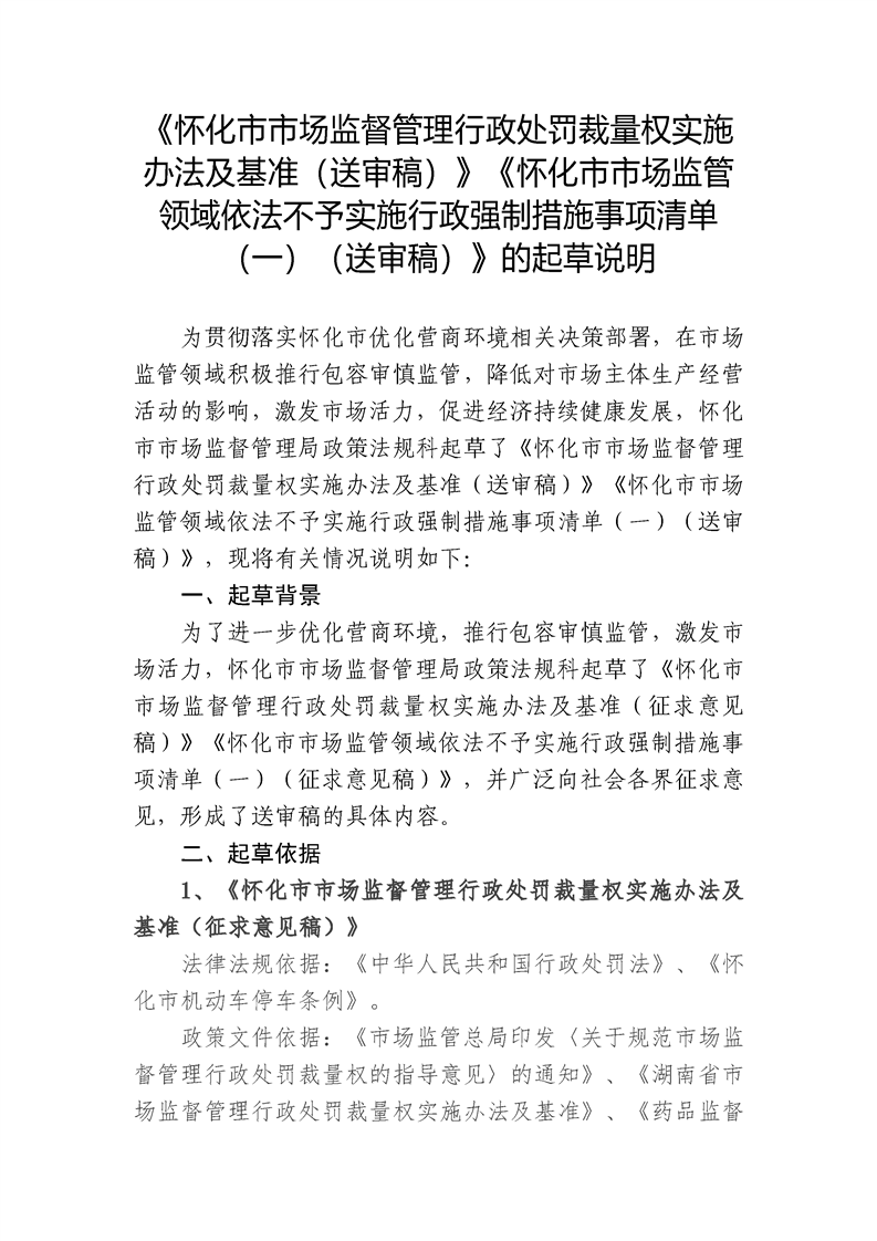 懷化市市場監督管理局解讀《懷化市市場監督管理行政處罰裁量權實施辦法及基準(送審稿)》《懷化市市場監管領域依法不予實施行政強製措施事項清單(一)(送審稿)》