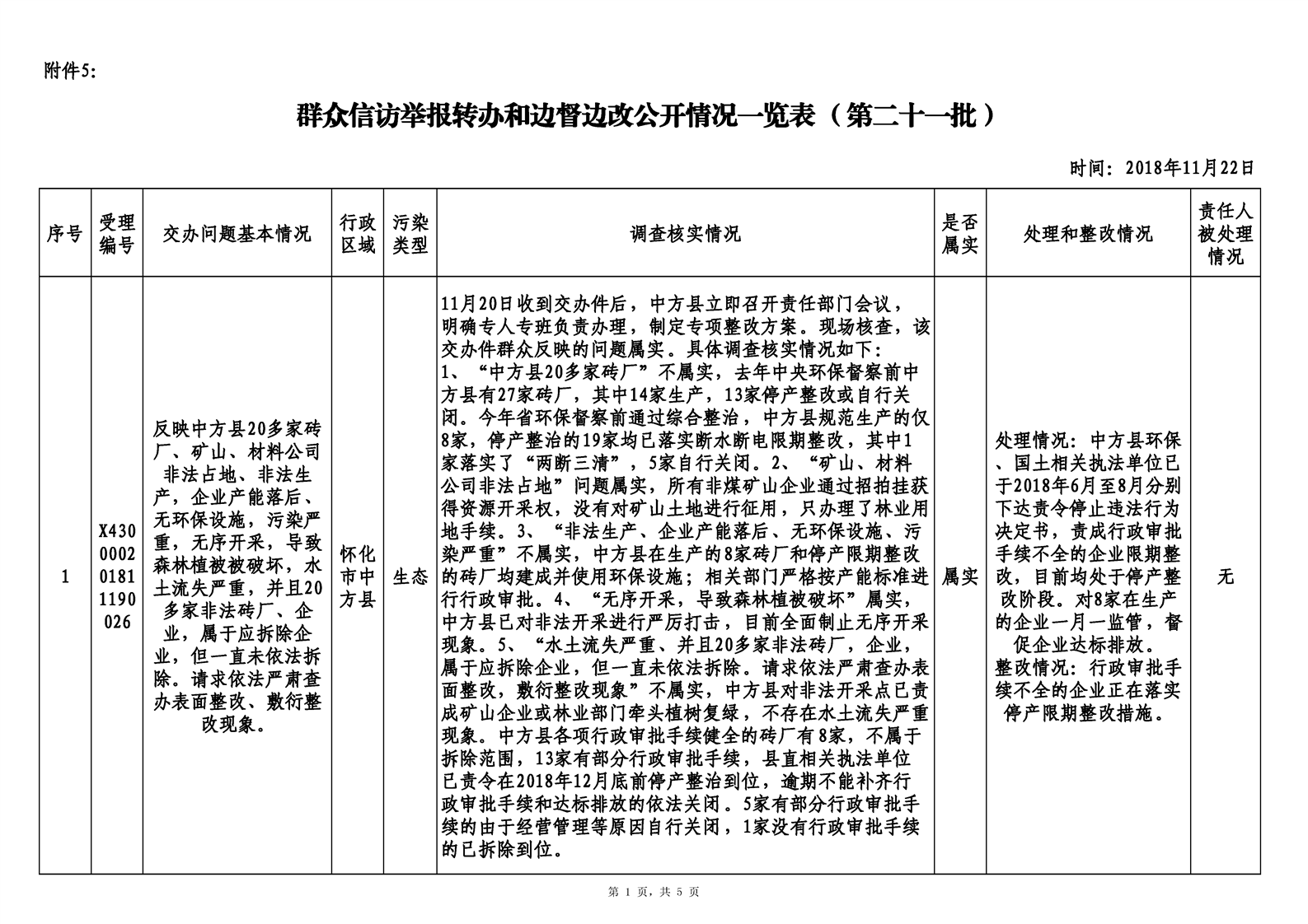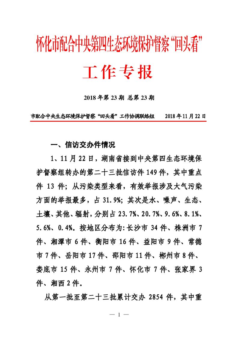 第二十三期 懷化市配合中央生態環境督察回頭看工作專報