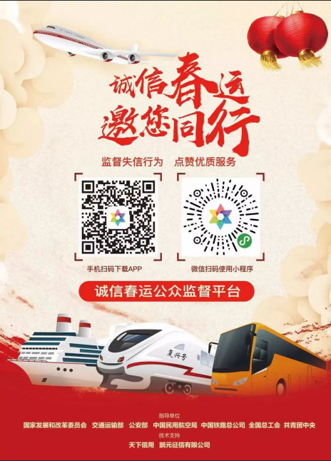 從2017年開始,國家發展改革委會同公安部、交通運輸部、民航局、鐵路總公司等部門和單位建立了“誠信春運公眾監督平台”,鼓勵旅客隨時隨地監督春運中的失信和不文明行為,點讚優質服務和好人好事,取得積極成效。