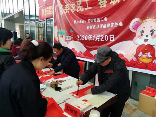 1月20日,懷運集團工會聯合鶴城區詩詞楹聯協會在懷化綜合客運樞紐站開展“情係農民工,春聯送祝福”活動。