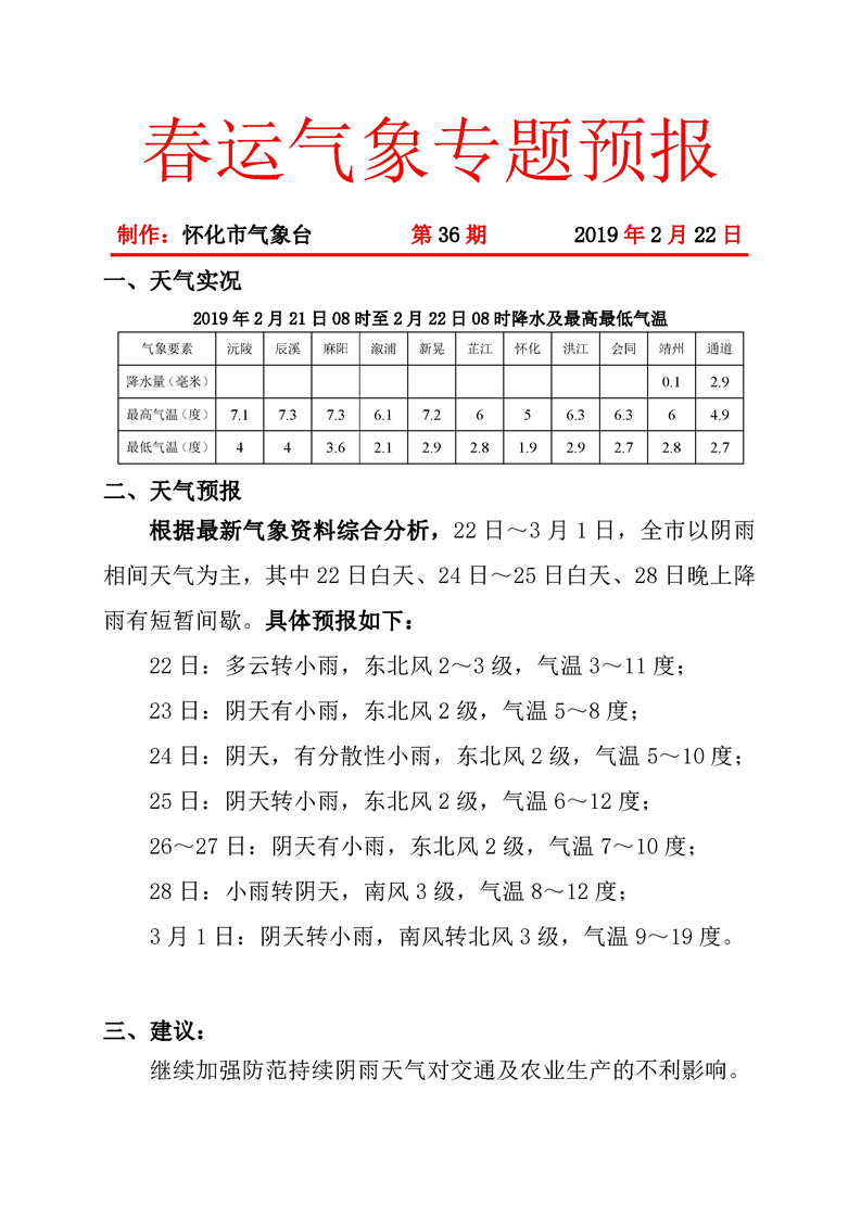 春運氣象專題預報(第36期)