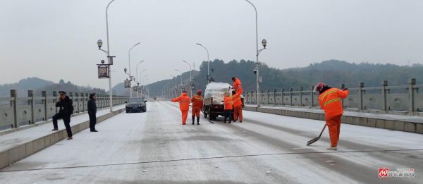 洪江區公路管理局應急小分隊已在結冰路段進行除冰融雪處理。對橋梁、隧道、急彎、陡坡等道路易結冰處設立醒目的警示標誌牌,提示來往車輛減速慢行。路政巡查人員加強路麵巡查力度,實時掌握路麵信息。在檢測大廳及信息指揮中心均有專人值班,並且實行抗冰除雪“特護期”24小時值班製。