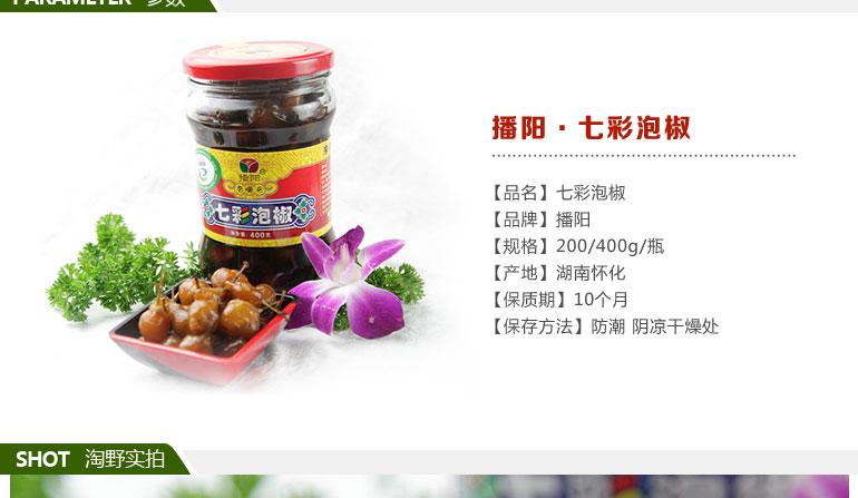 品牌: 播陽 包裝方式: 罐裝 保質期: 360天 淨重: 400g 生產許可證: QS431204017270 產品標準號: DB43/230-2009 配料表: 七彩椒、精選生抽、糖、蒜水、沙薑、八角 儲藏方法: 置於陰涼幹燥處,避免陽光直射 食品添加劑: 無 產地: 湖南省 懷化市 通道侗族自治縣 |
