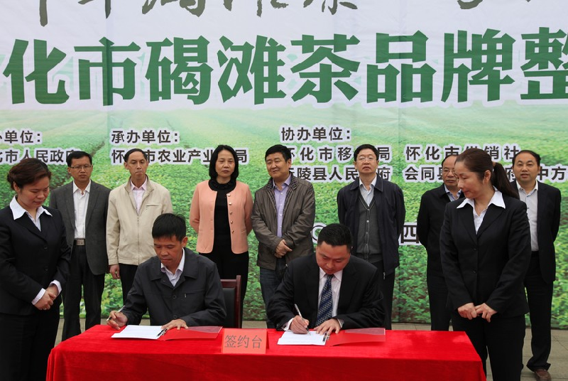為展示懷化茶成果、打造茶品牌,推動懷化茶產業快速健康發展。4月20日上午, “千年碣灘茶.萬人共品茗”懷化市碣灘茶品牌整合推介會在市委門口佳惠廣場隆重舉行。市委常委、市委秘書長謝宏有,市人大常委會副主任蔣丙生、副市長王行水、市政協副主席向建平、市政府副秘書長董偉等領導出席推介會,市委辦、市人大辦、市政府辦、市政協辦、市發改委、市農辦、市經信委、市農業產業化局、沅陵縣人民政府、會同縣人民政府、中方縣人民政府等主要負責人參加會議。