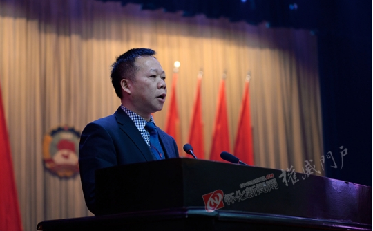 市政協副主席黃雪鴻代表政協懷化市委員會常務委員會向大會報告市政協四屆二次會議以來的提案工作情況。