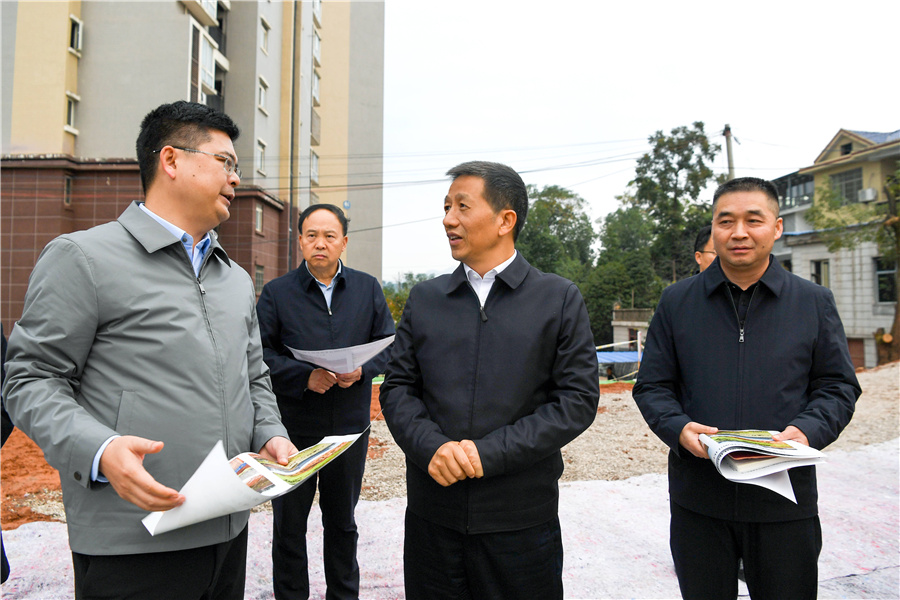 (11月22日下午,市委書記許忠建現場調研鶴中一體化發展和太平溪綜合治理工作。圖為許忠建在太平溪麗江佳園段察看太平溪治理情況。懷化日報全媒體記者 楊智偉 攝)