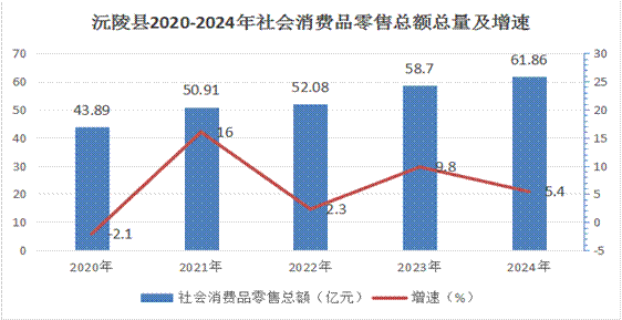 全縣完成社會消費品零售總額61.86億元[4],同比增長5.4%全年居民消費價格指數(CPI)為100.2%;服務項目價格指數為100.2%