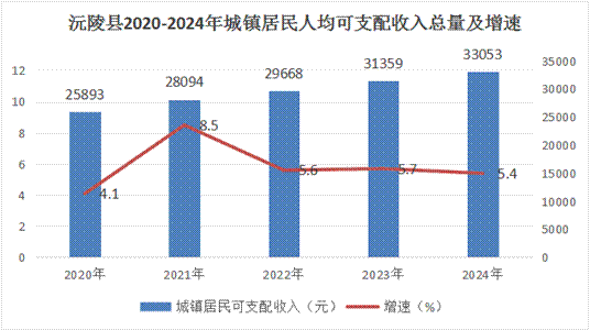 全縣城鄉居民人均可支配收入為22452元,同比增長6.4%。其中,城鎮居民人均可支配收入33053元,同比增長5.4%;農村居民人均可支配收入16213元,同比增長6.6%