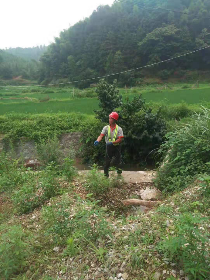 2019年9月8日 通道縣黃柏村,施工人員正在做光纜引入施工