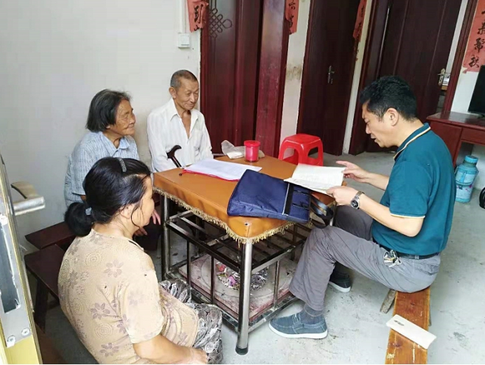 2019年10月,漵浦縣兩丫坪鎮幫扶責任人走訪漵浦縣兩丫坪鎮黃金村重度殘疾貧困戶李孝元。