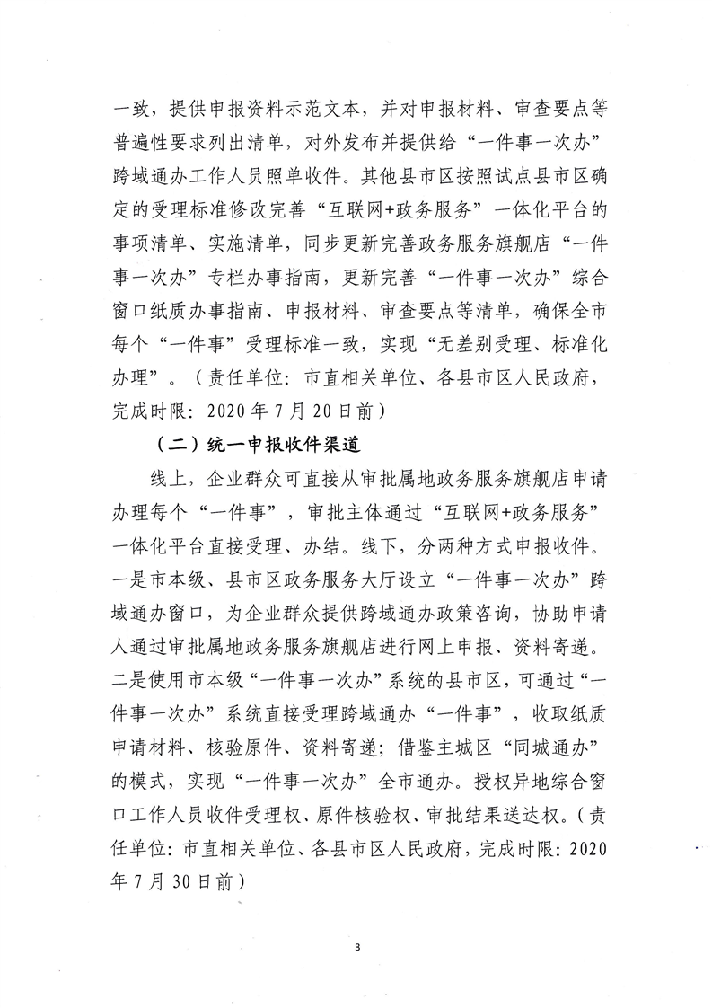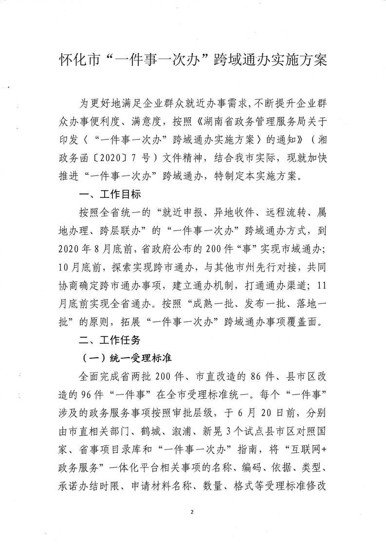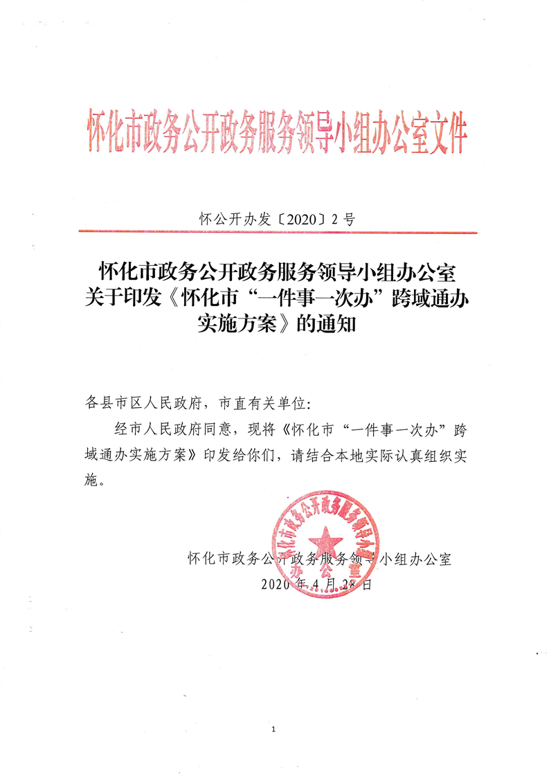 懷化市政務公開政務服務領導小組辦公室關於印發《懷化市“一件事一次辦”跨域通辦實施方案》的通知