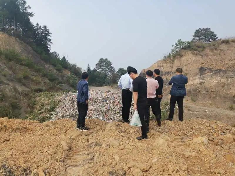 稍作停留,督察組直奔礦山開采區。多年采煤遺留下來大量的矸石渣,現場組爬到渣堆上,周邊環境盡收眼底,卻意外地發現了礦區邊緣有一處周邊村民私傾亂倒生活垃圾的傾倒點,督察組當即向鄉政府進行交辦。