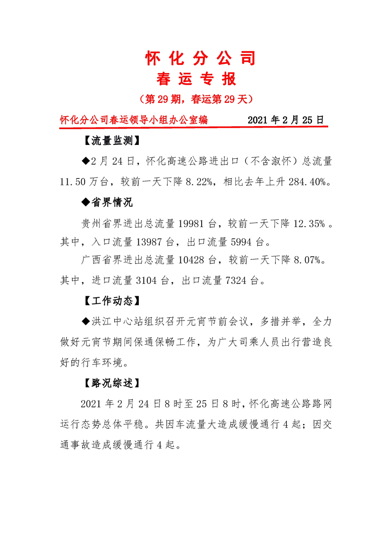 省高速集團懷化分公司第29期春運專報
