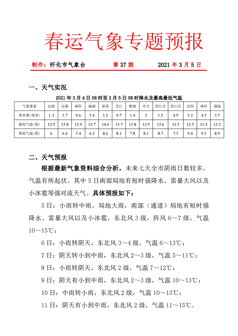 春運期間氣象專題第37期