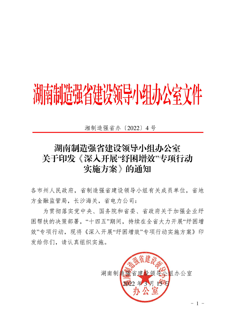 湖南製造強省建設領導小組辦公室關於印發《深入開展“紓困增效”專項行動實施方案》的通知