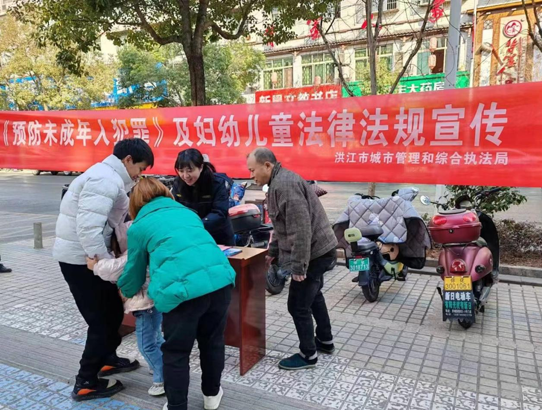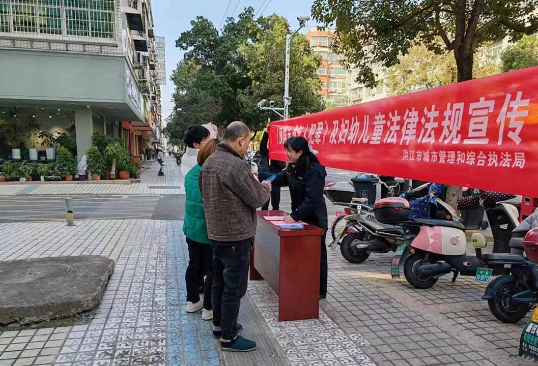 12月23日,洪江市城管局在黔城鎮玉壺路開展了關愛婦女兒童合法權益普法宣講暨政務公開主題日活動。