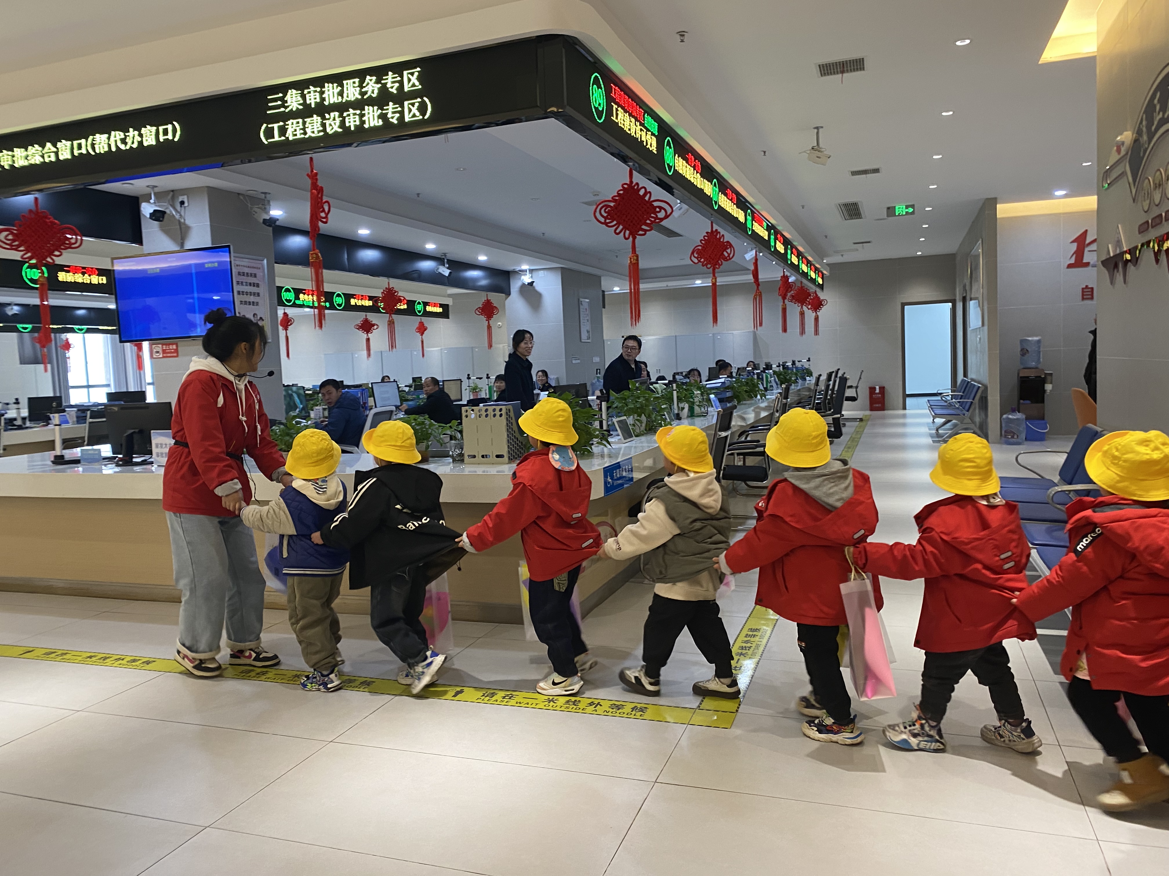 政務大廳的工作人員熱情地歡迎了各位小朋友們和老師的到來,並耐心地向他們介紹了政務大廳的基本結構和日常工作情況。小朋友們好奇地打量著每一個服務窗口,對工作人員耐心細致的解答充滿了興趣。