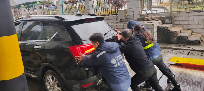中午時分,在興隆收費站,一輛黑色小車正常繳費後突發故障,多次打火後仍無法啟動。收費站工作人員幫助司機將車推至安全區域,並幫司機聯係了附近的汽修廠。對收費站工作人員的熱心幫助,司機連連表示感謝。