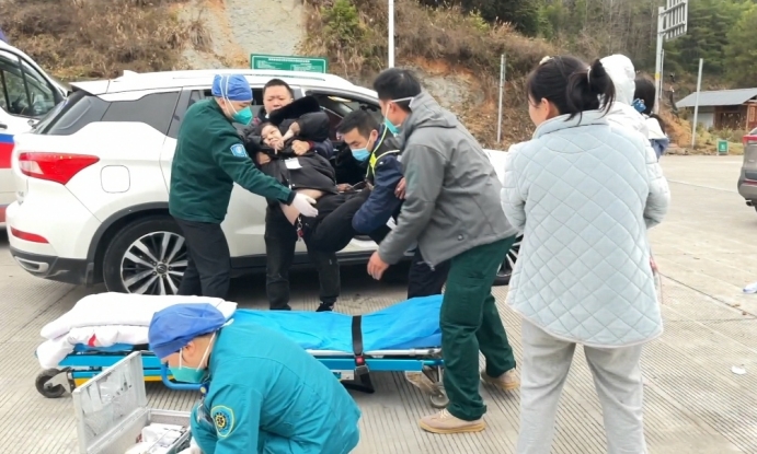 大年初一上午,一輛粵B越野車通過萬佛山收費站時,駕駛員向收費站工作人員尋求幫助。原來,車上一位老人突發疾病,麵色蒼白,表情痛苦,無法正常交流。收費班長了解情況後,立馬撥打120,同時將車輛引導到安全區域。十幾分鍾後,醫護人員趕到現場,收費班長協助醫護人員將暈厥老人抬上救護車送往醫院接受治療。