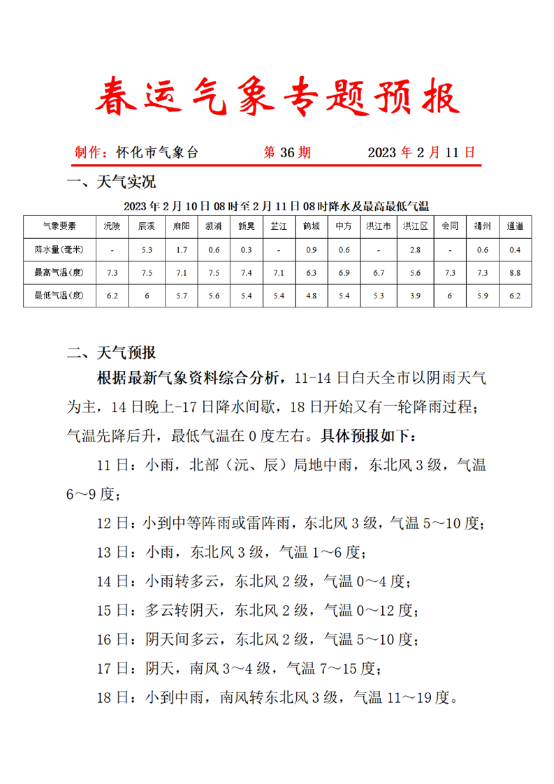 春運氣象專題預報 第36期