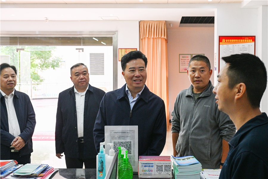 (10月9日上午,市委副書記、市長黎春秋以“四不兩直”方式在鶴城區督導檢查“一迎三創”工作。圖為黎春秋在迎豐街道銀灣社區檢查。懷化日報全媒體記者 潘雨 攝)