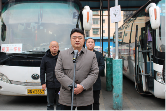儀式伊始,縣交通運輸局副局長歐建興同誌就春運期間各項工作的組織、協調、調度以及督查等關鍵環節進行了全麵且深入的發言,為後續工作的有序開展明確了方向與重點。緊接著,駕駛員代表粟丁權同誌,作為奮戰在春運一線的從業者,以質樸而堅定的話語表達了對安全駕駛、優質服務的承諾;湘運公司經理左有軍同誌則從企業管理的宏觀視角,闡述了企業全力保障春運安全與服務質量的決心與舉措,彰顯了企業在春運工作中的擔當。隨後,辰溪縣縣委常委、政法委書記黃明畢同誌莊重宣布2025年辰溪縣春運正式啟動。