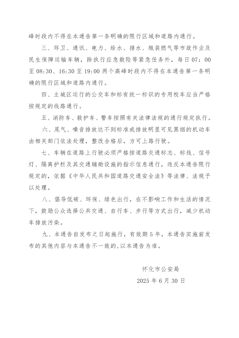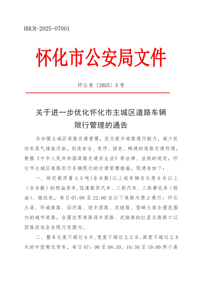 關於進一步優化懷化市主城區道路車輛限行管理的通告