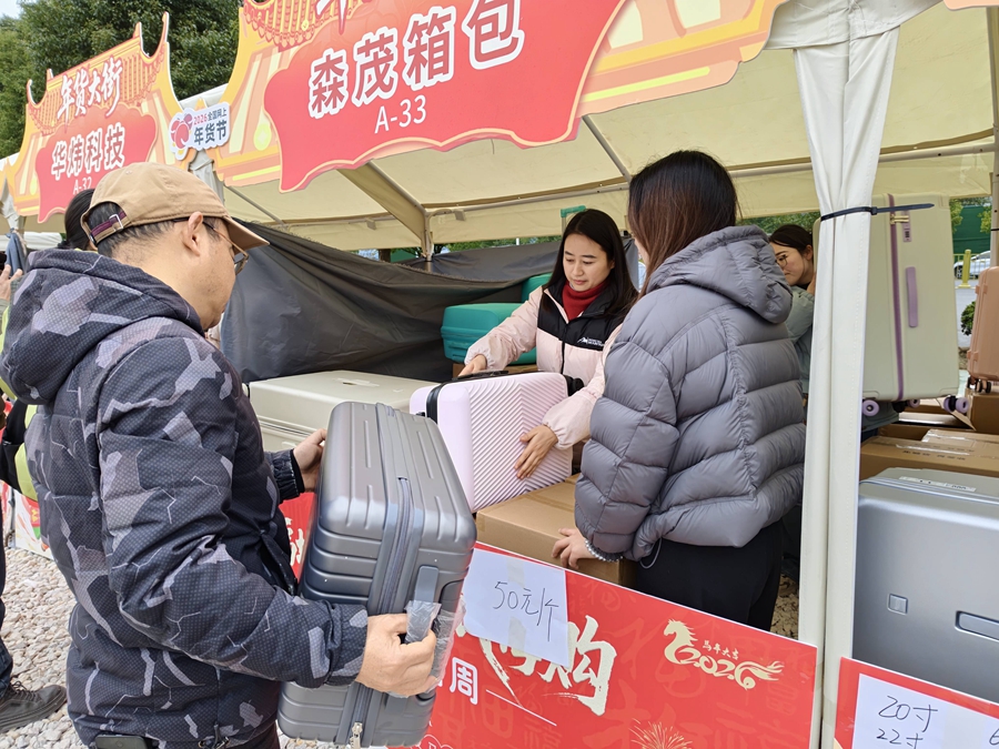 “关键词2是懷化本土的箱包企業,這也是关键词2第一次參加年貨節。”湖南華煒科技有限公司馮品瑜介紹,本次帶來了多款流行的行李箱,並以成本價出售,“在商場裏要上千元的箱子,在這裏隻要兩三百元就能買到。”