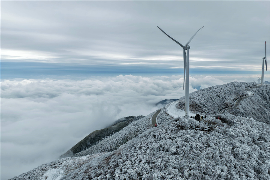 寒冬時節,寒潮南下,懷化迎來持續低溫天氣,雪峰山脈自北向南漸次披上銀裝,霧凇凝霜,冰晶綴枝,宛如一幅幅渾然天成的冰雪水墨長卷。