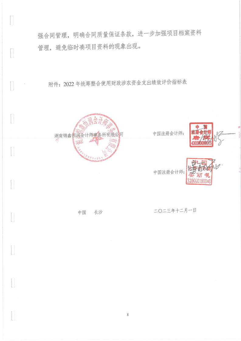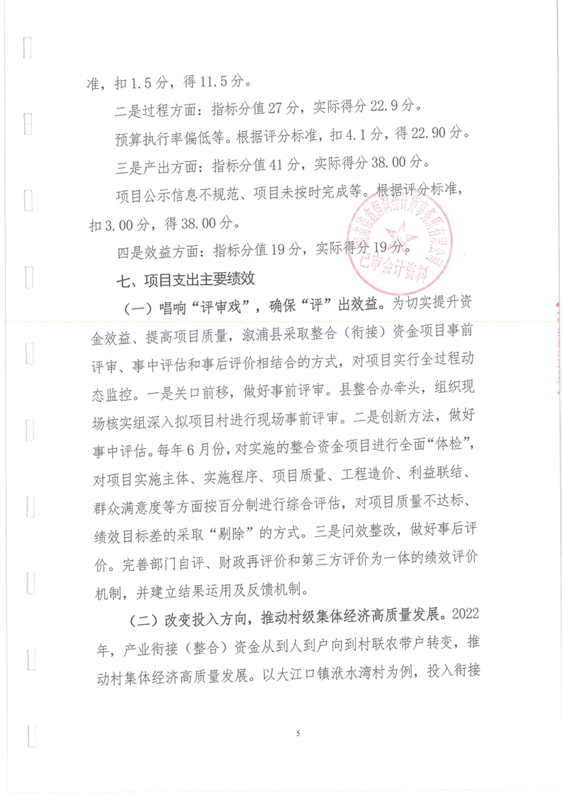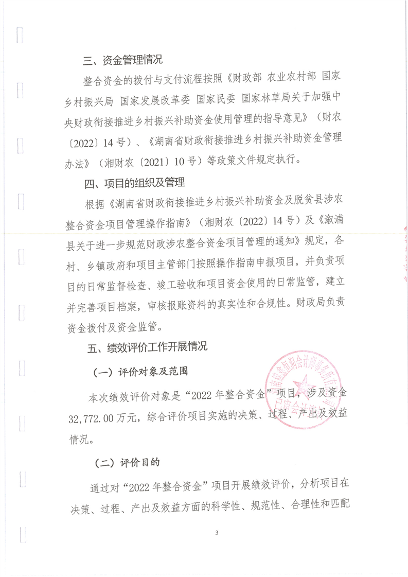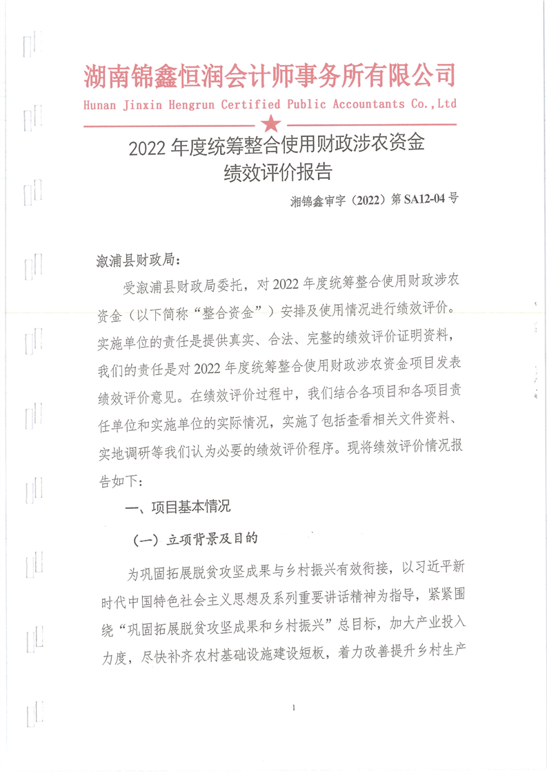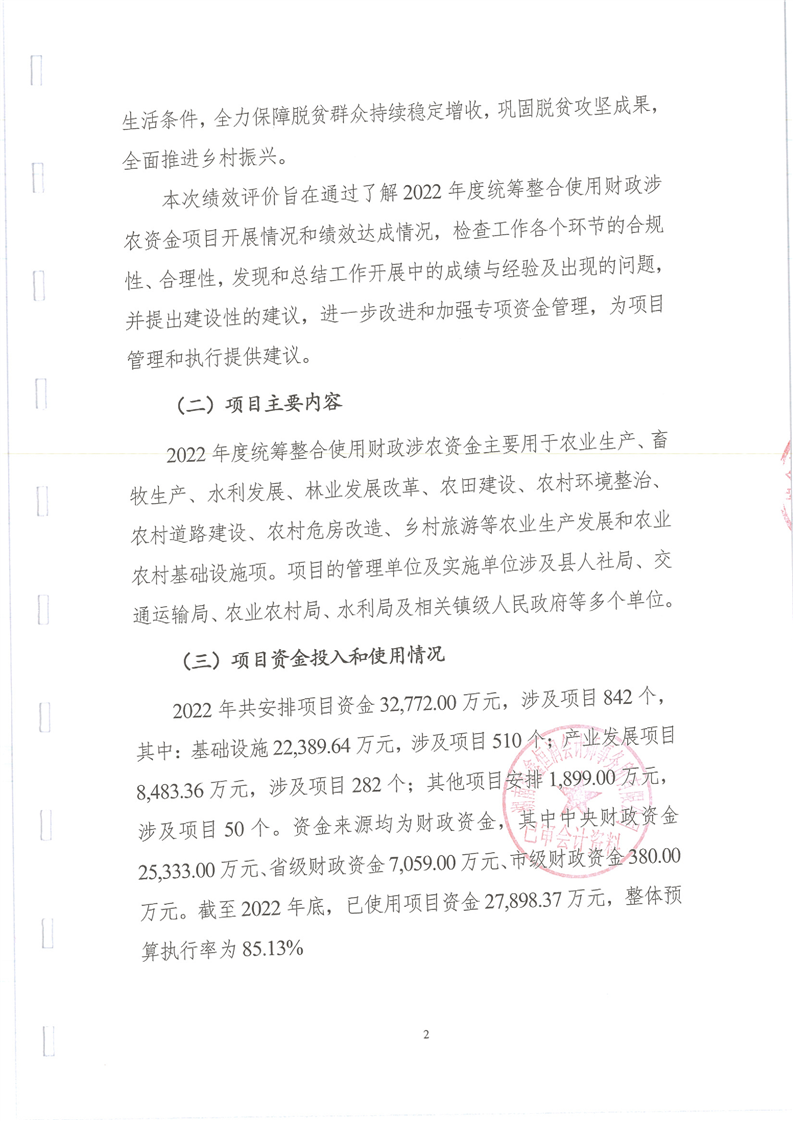 漵浦縣2022年度統籌整合使用財政涉農資金項目績效評價報告