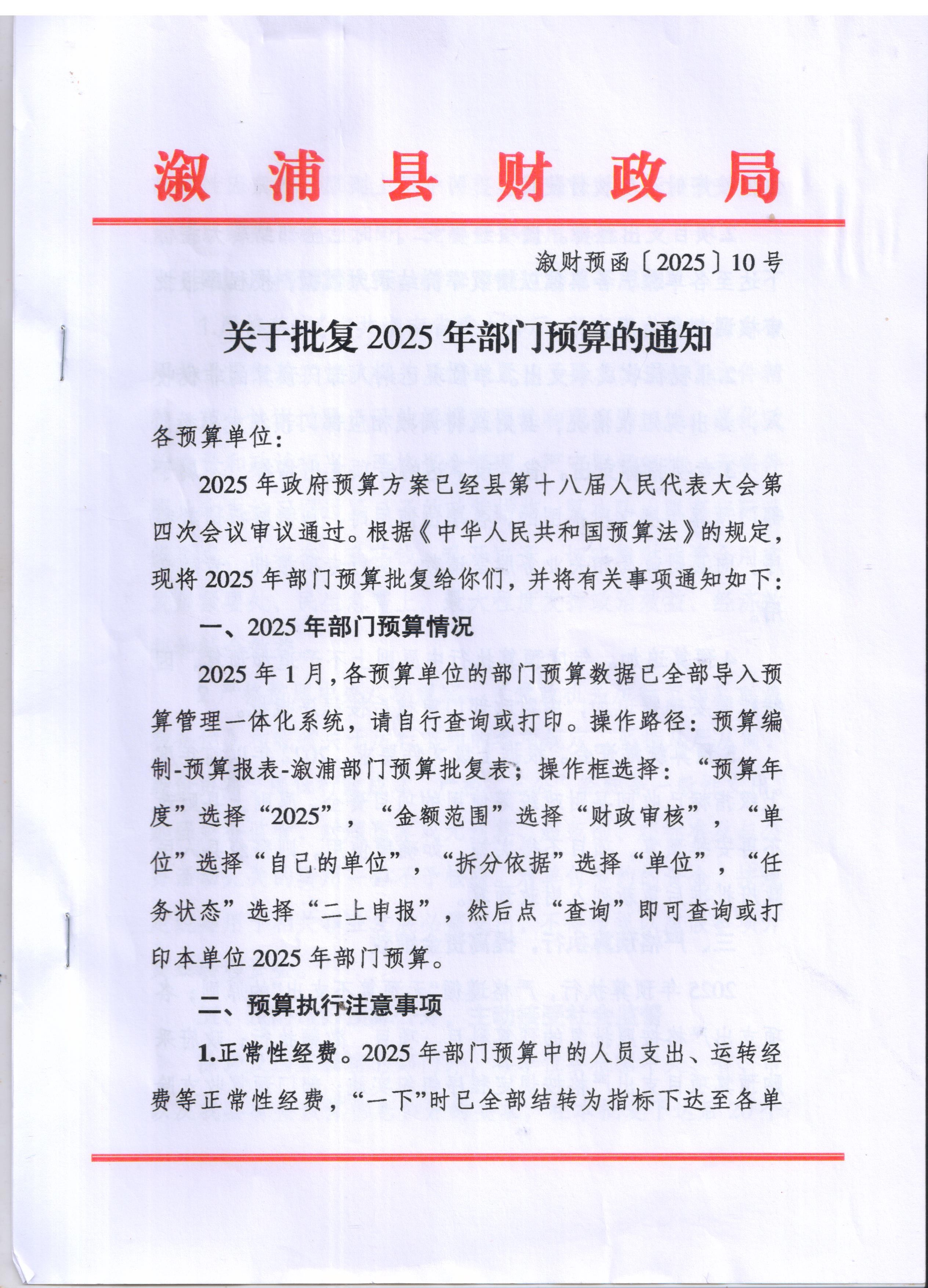 關於批複2025年部門預算的通知