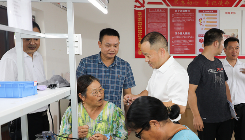 鄭湘在深子湖鎮向家堖村督導檢查鞏固拓展脫貧攻堅成果同鄉村振興有效銜接工作,並走進生產車間了解產業幫扶情況