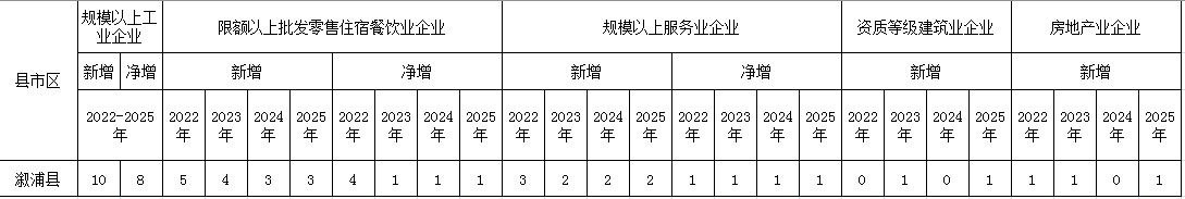 按照“四上”企業抓增長、達標企業抓入庫、臨規企業抓培育、新建企業抓跟蹤的總體思路,堅持創新發展,促進“四上”企業調結構、擴總量,強管理、上水平,有效提高“四上”企業對經濟增長的貢獻率,促進全縣經濟平穩快速發展。到2025年末,全縣規模以上工業企業、房地產企業、有資質的建築業企業、限額以上批發零售住宿餐飲業企業、規模以上服務業企業分別達到143戶、23戶、15戶、48戶、25戶。