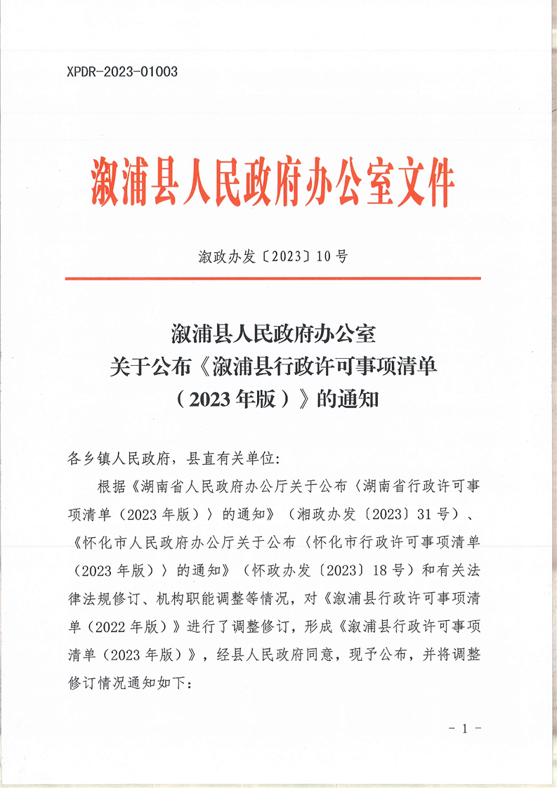 漵浦縣人民政府辦公室關於公布《漵浦縣行政許可事項清單(2023年版)》的通知