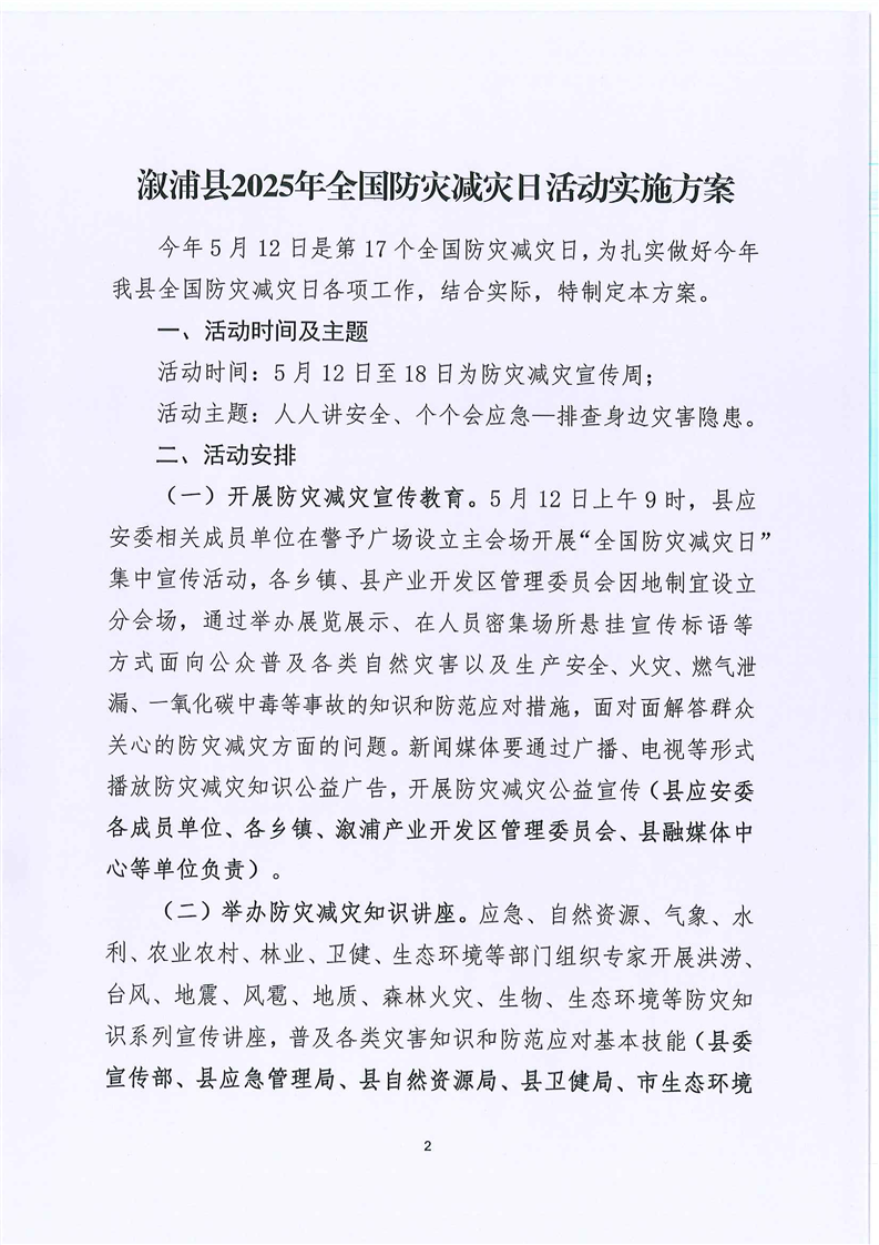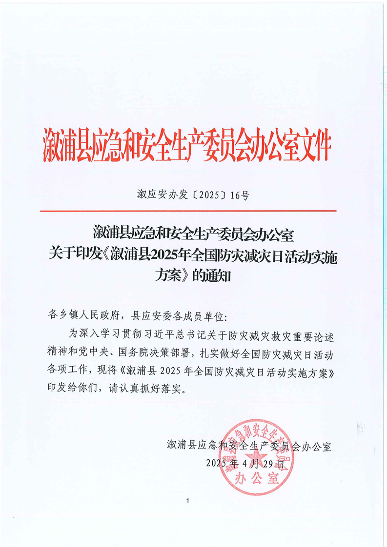 漵浦縣應急和安全生產委員會辦公室關於印發《漵浦縣2025年全國防災減災日活動實施方案》的通知