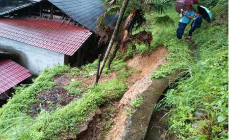 6月23日7時許,懷化市漵浦縣兩丫坪鎮頓腳水村黨總支部書記黃德海在巡查到周某來、周某興兩戶時,發現兩戶屋後坡麵出現土層滑落,預判會發生山體滑坡,於是立即對受威脅群眾2戶7人進行轉移安置,23日9時10分許,兩戶屋後發生山體滑坡。由於巡查到位、轉移及時,未造成人員傷亡。