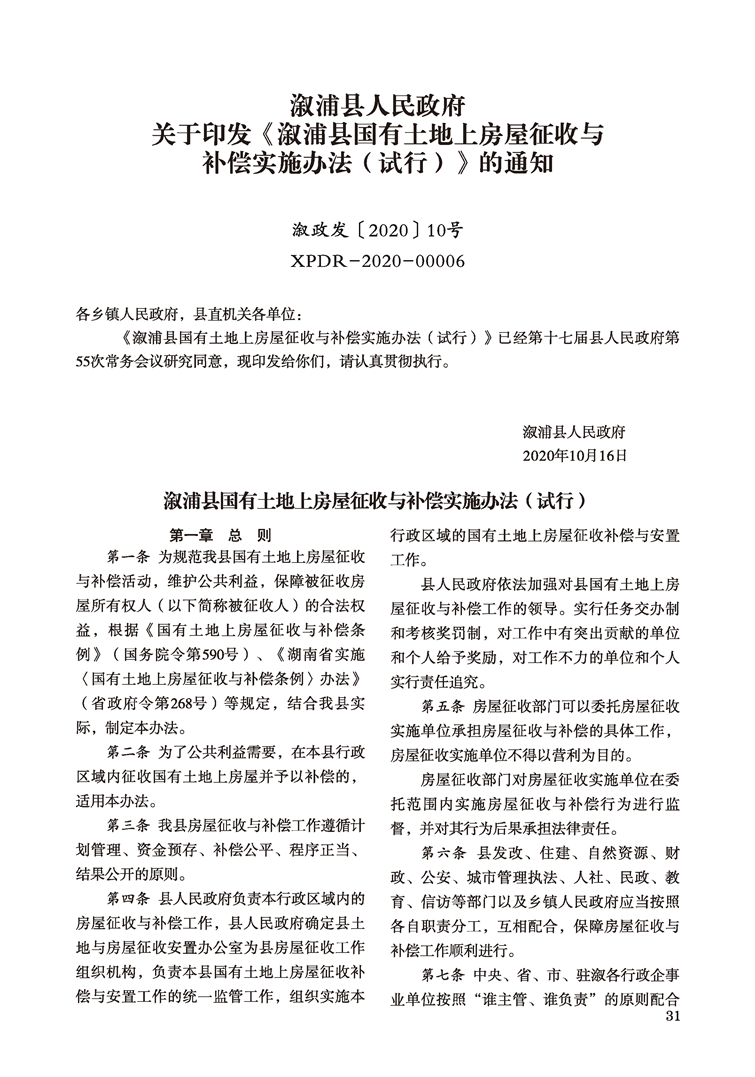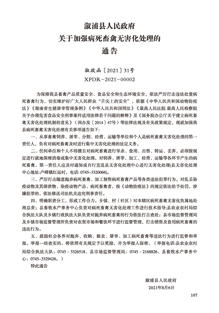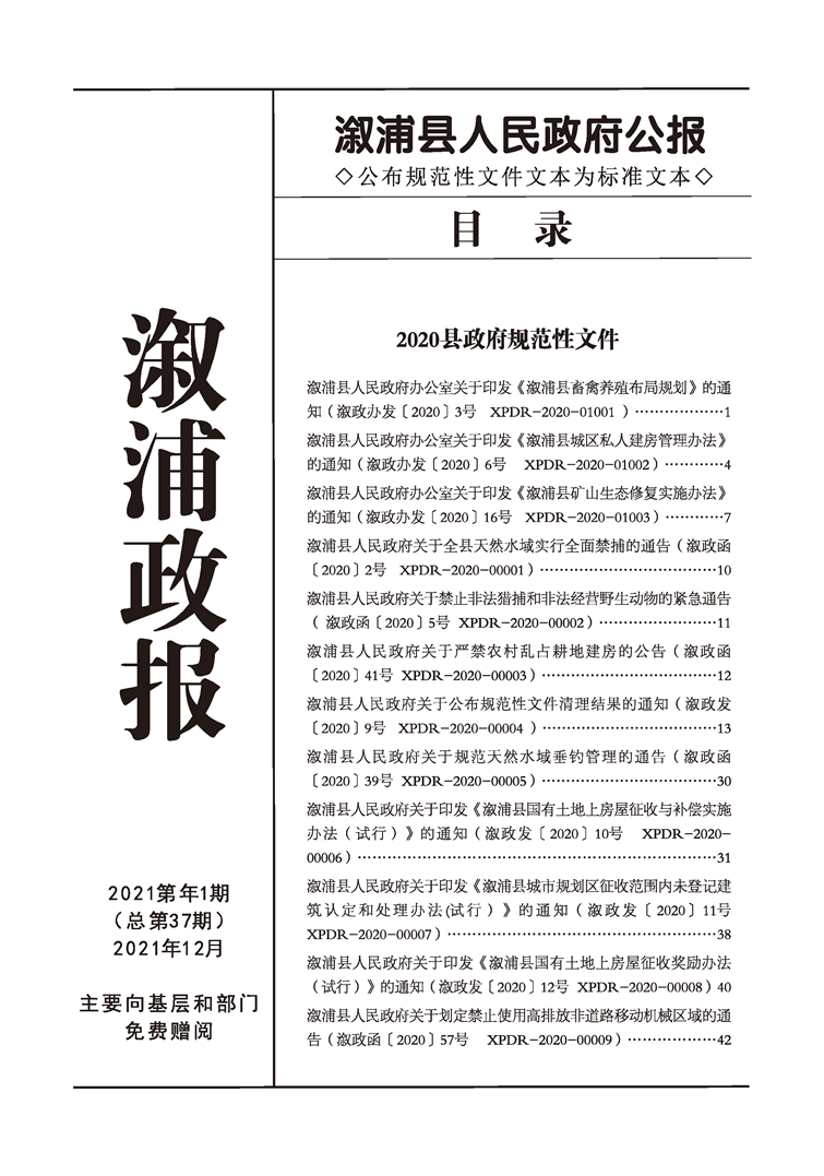 漵浦縣人民政府公報(合訂本)(2020年—2021年)