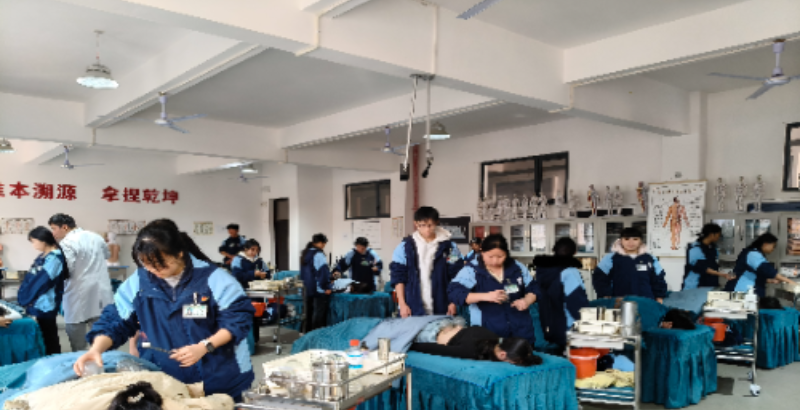 走進縣職業中等專業學校的實訓基地,景象截然不同。數控機床旁,學生專注地操作機器;中醫拔罐理療室裏,學生們嫻熟的展示中醫技術;烹飪操作間裏,學生們練習刀工製作菜品等,在這裏,課堂與“車間”隻有一步之遙。