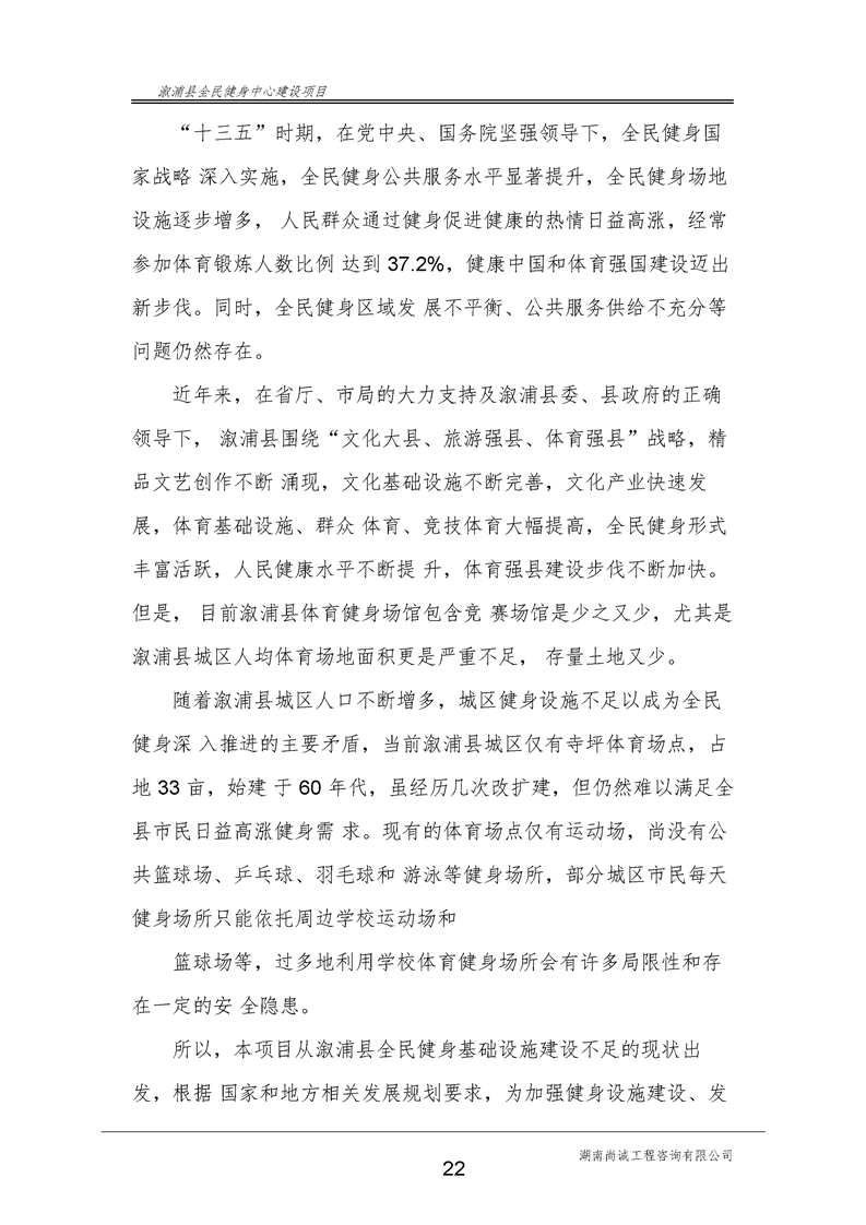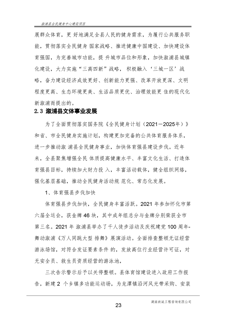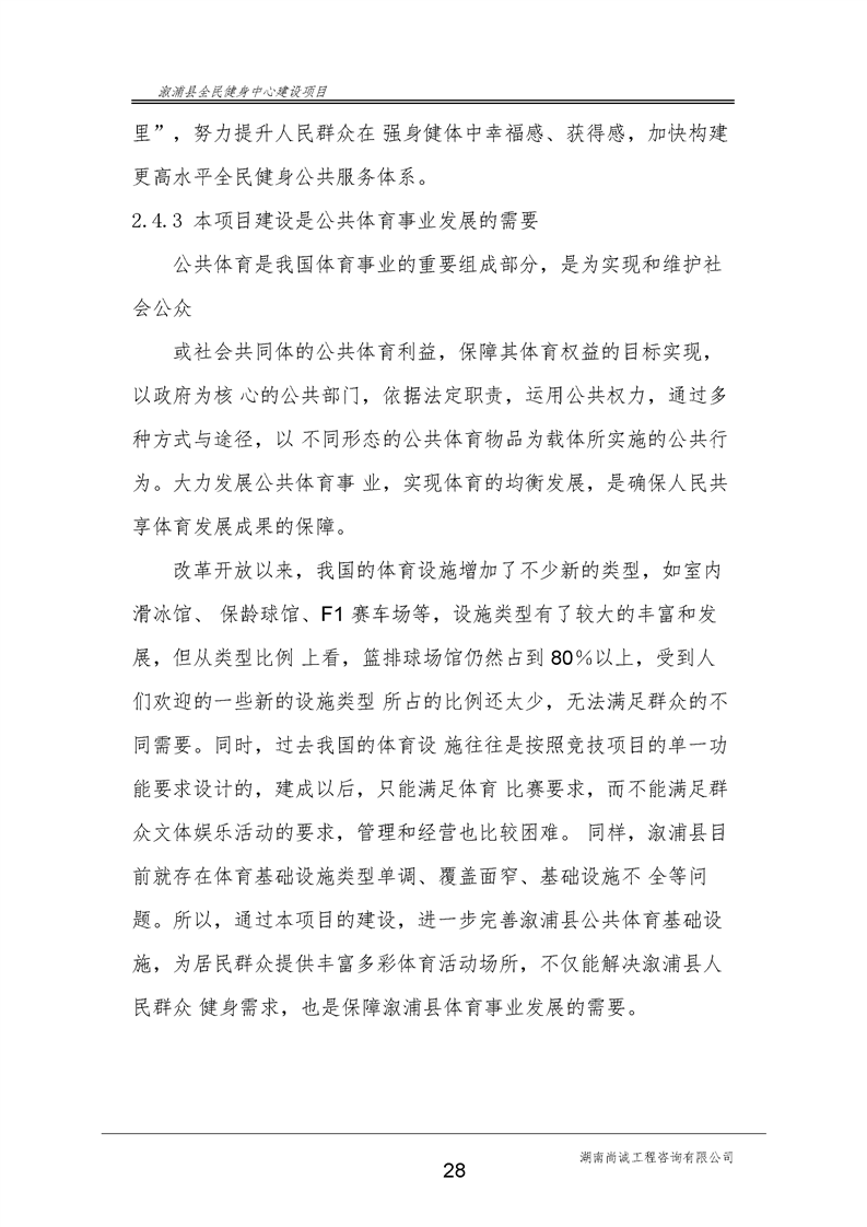 漵浦縣全民健身中心建設項目可行性研究報告