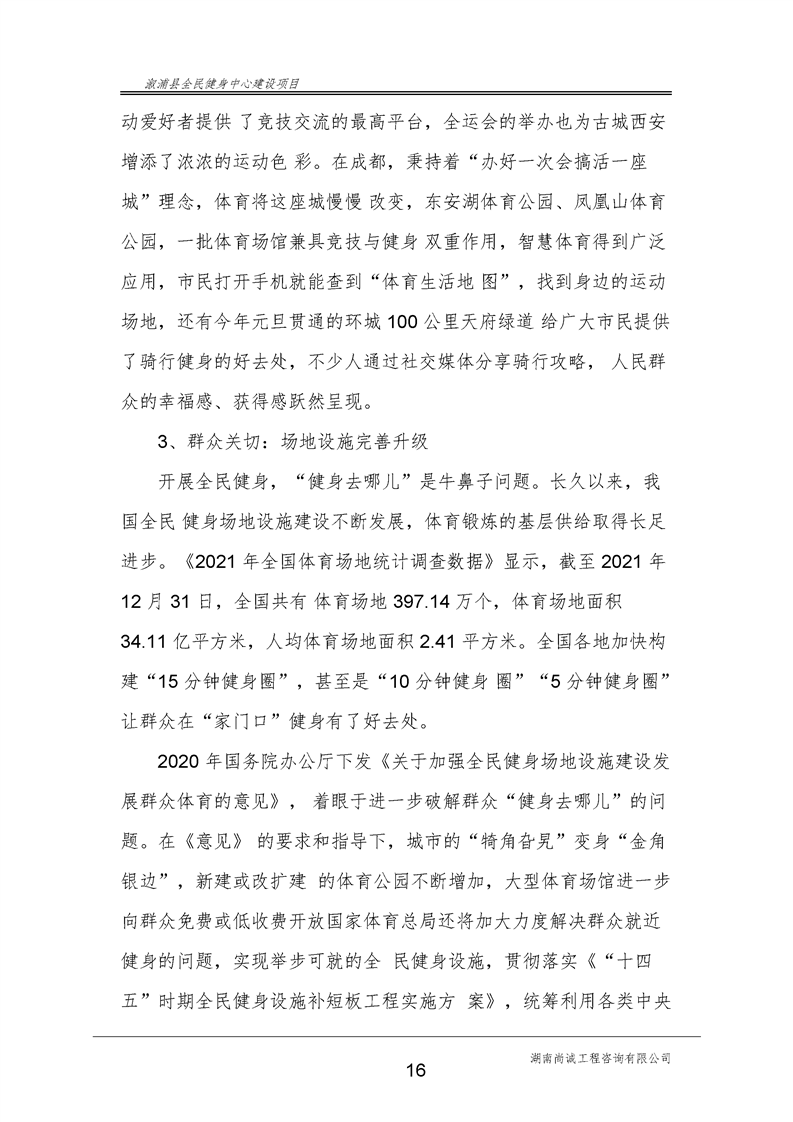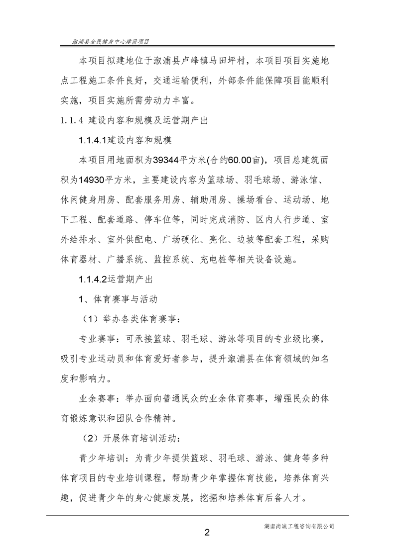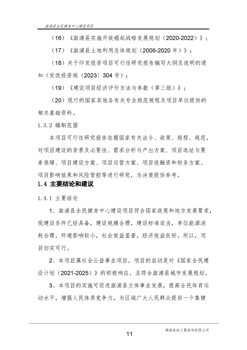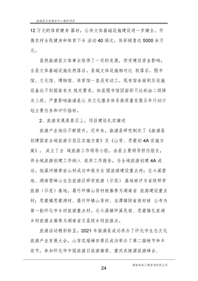 漵浦縣全民健身中心建設項目可行性研究報告