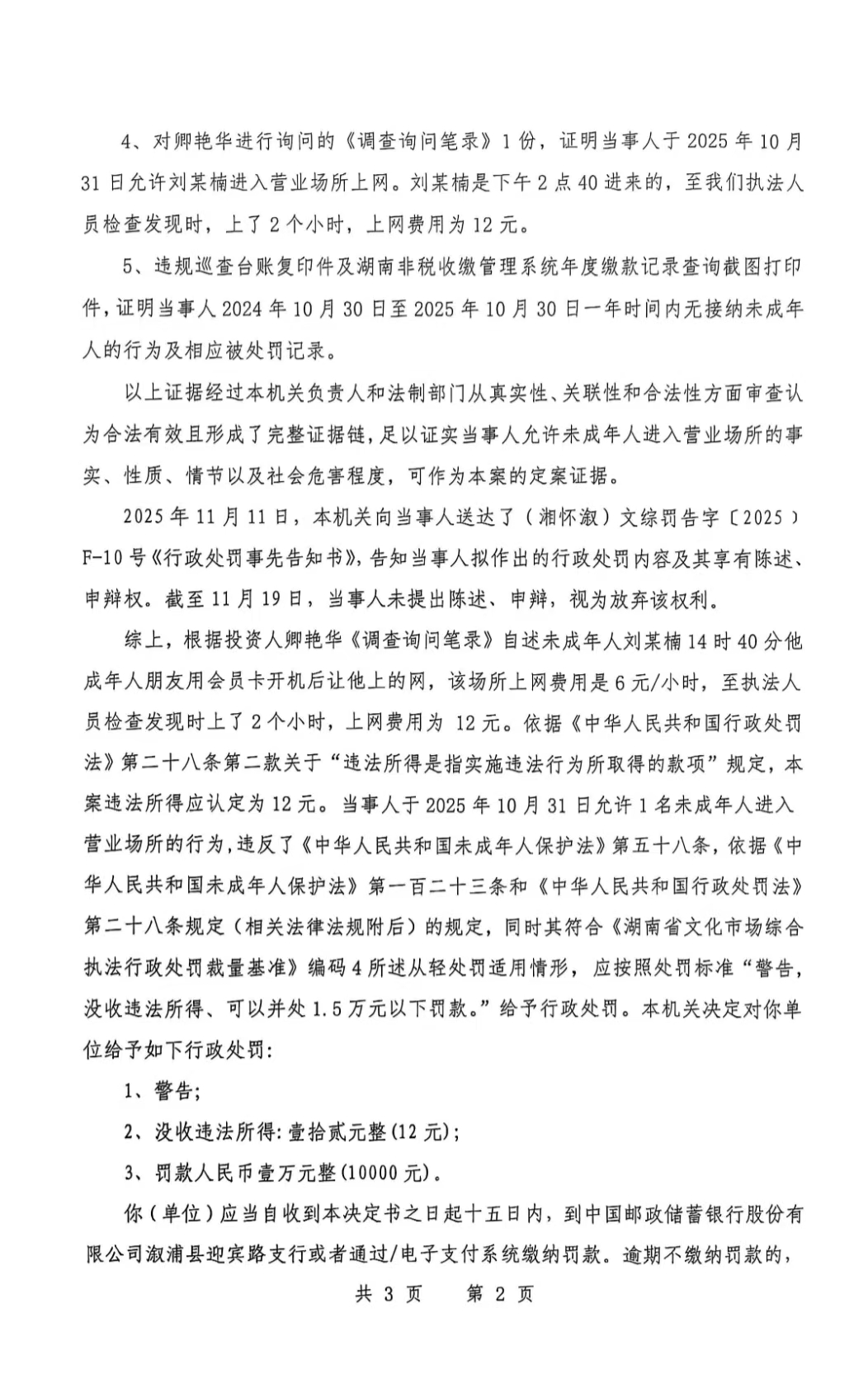 行政處罰決定書--漵浦洛麗網咖 (湘懷漵)文綜罰字 〔2025〕F-10號